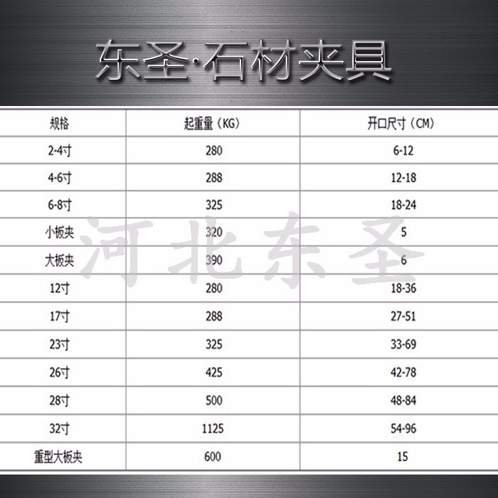 查看詳情大理石吊鉗采用鍍鋅40G材質(zhì)制成,完全取代柔性吊裝異性石材過程中出現(xiàn)重心不穩(wěn),吊裝危險現(xiàn)象發(fā)生,因此大理石夾具得到用戶一致認(rèn)可,普遍被運(yùn)用。