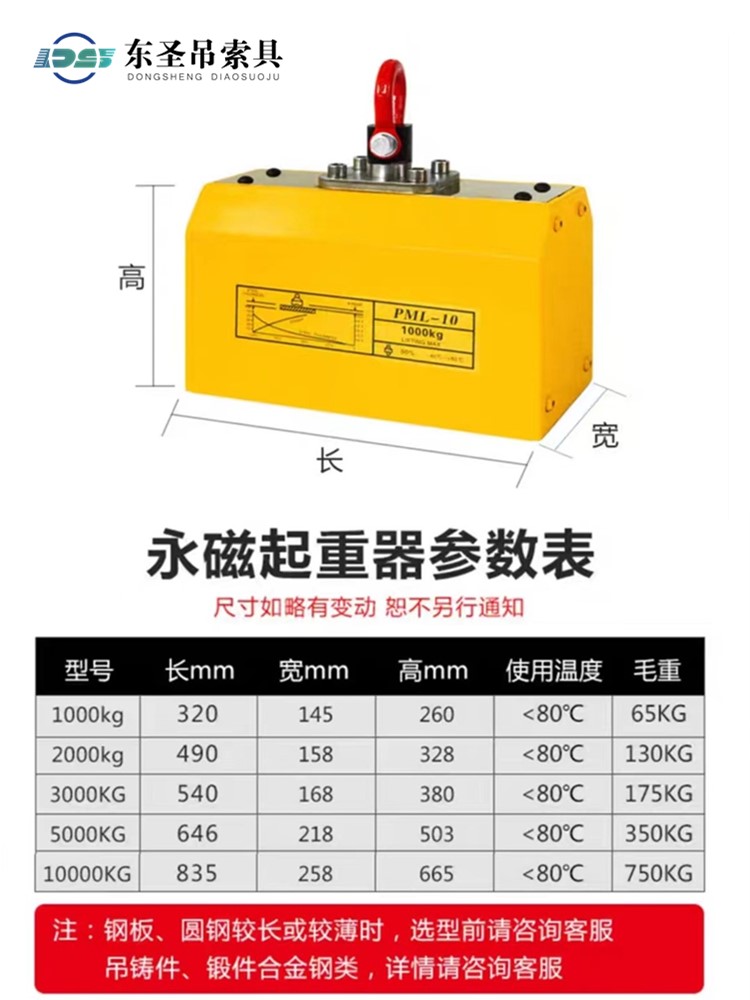 自動(dòng)永磁吸盤常規(guī)zui小載荷為1000公斤,zui大載荷為10000公斤。